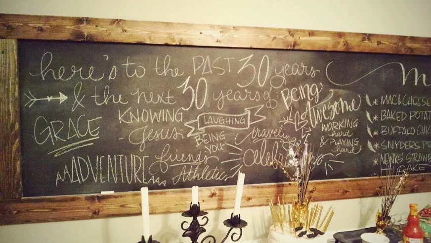 And we finished it just in time for JD's surprise birthday party! JD turned the big 3-0 in February. How did I pull off the surprise? I spoiled all of the little surprises I had for him leading up to the big surprise. I also had lots of friends helping out along the way (i.e. my neighbor Elizabeth who let / helped me cook everything at her house during the ice storm the day before, Julie for making sure the guys got together so that a group of friends could help me set up the party in the house)!