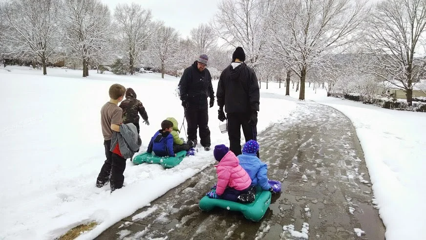 Then we woke up the next morning and hit the golf course slopes for some sledding...